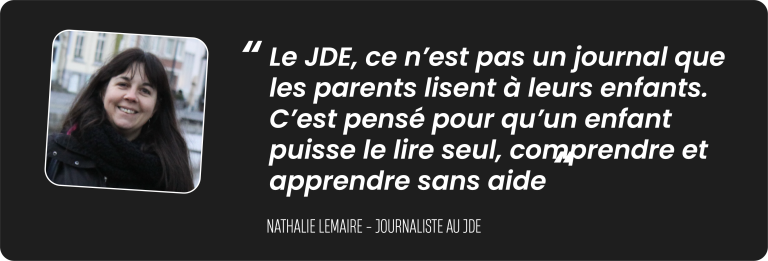 Nous, ce qu’on veut, c’est que chaque lecteur soit autonome. Le JDE, ce n’est pas un journal que les parents lisent à leurs enfants. C’est pensé pour qu’un enfant puisse le lire seul, comprendre et apprendre sans aide.