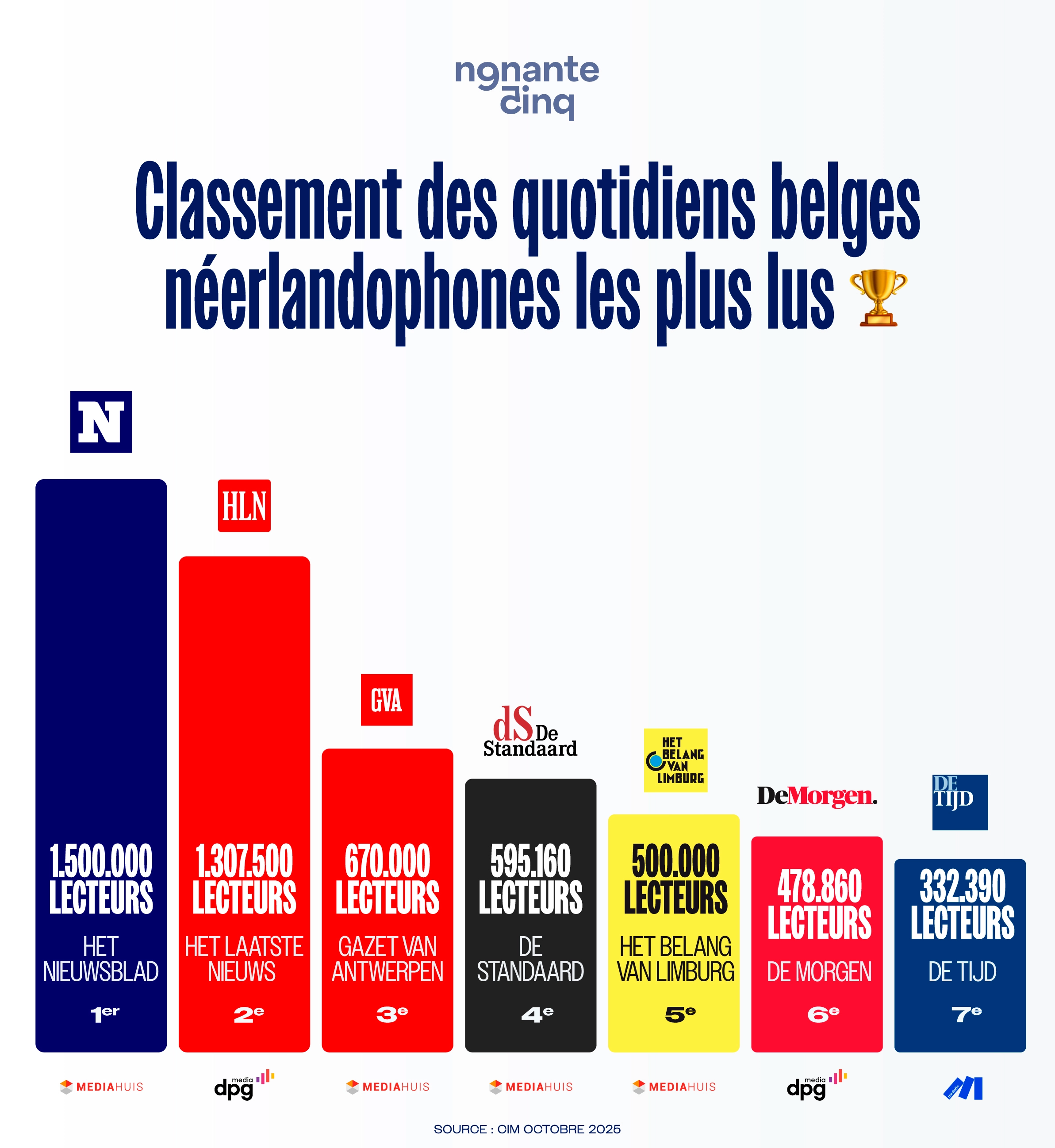 • 🥇 Het Nieuwsblad (Mediahuis) : 1.500.000 lecteurs