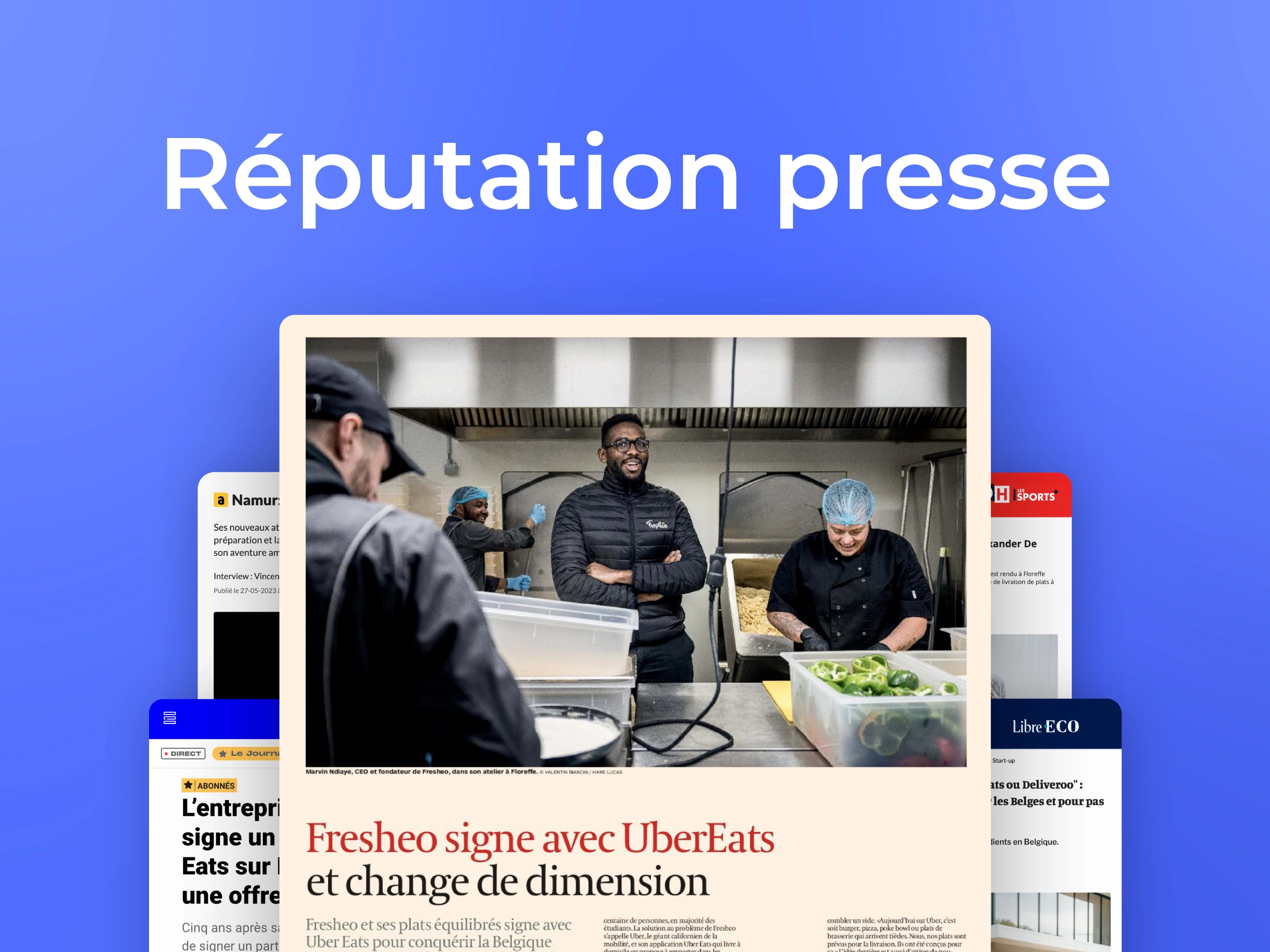 Dans le but d'accroitre sa visibilité, nous travaillons avec Marvin, à la fois pour faire parler de Fresheo, mais aussi au niveau de son personal branding en tant qu'entrepreneur. Résultat ? Près de 50 résultats, dans tous les grands médias de Belgique francophone, tel que le JT de RTL, la RTBF, LN24, Trends Tendance, L'Avenir, La DH, Flair, L'Echo, Le Soir, La Libre, Canal Z, On n'est pas des pigeons, Waldorado, et bien d'autres.