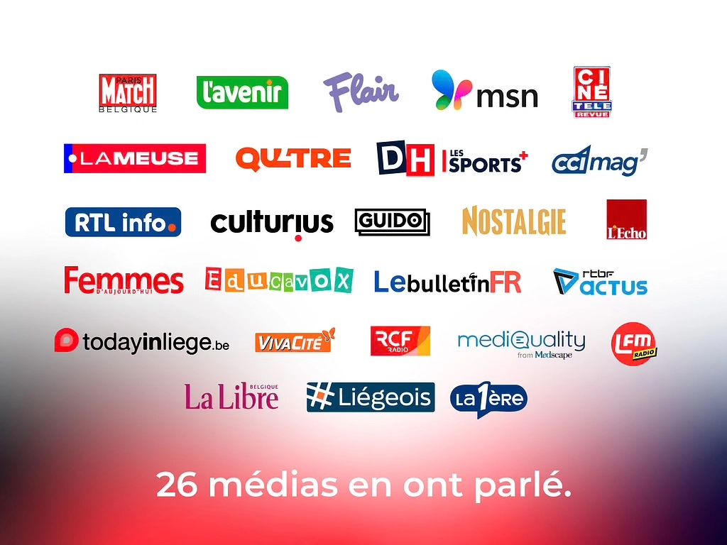 Nous nous sommes occupés de visibiliser le festival dans les médias locaux et nationaux, durant tout son déroulement Un travail de longue haleine qui nous a valu plus de 50 résultats dans près de 30 médias : La Libre, RTBF, RTL Info, RTC Télé, La DH, L’Avenir, Ciné-Télé-Revue, Paris Match, Flair, L’Echo, Femmes d’Aujourd’hui, La Première, VivaCité, etc.