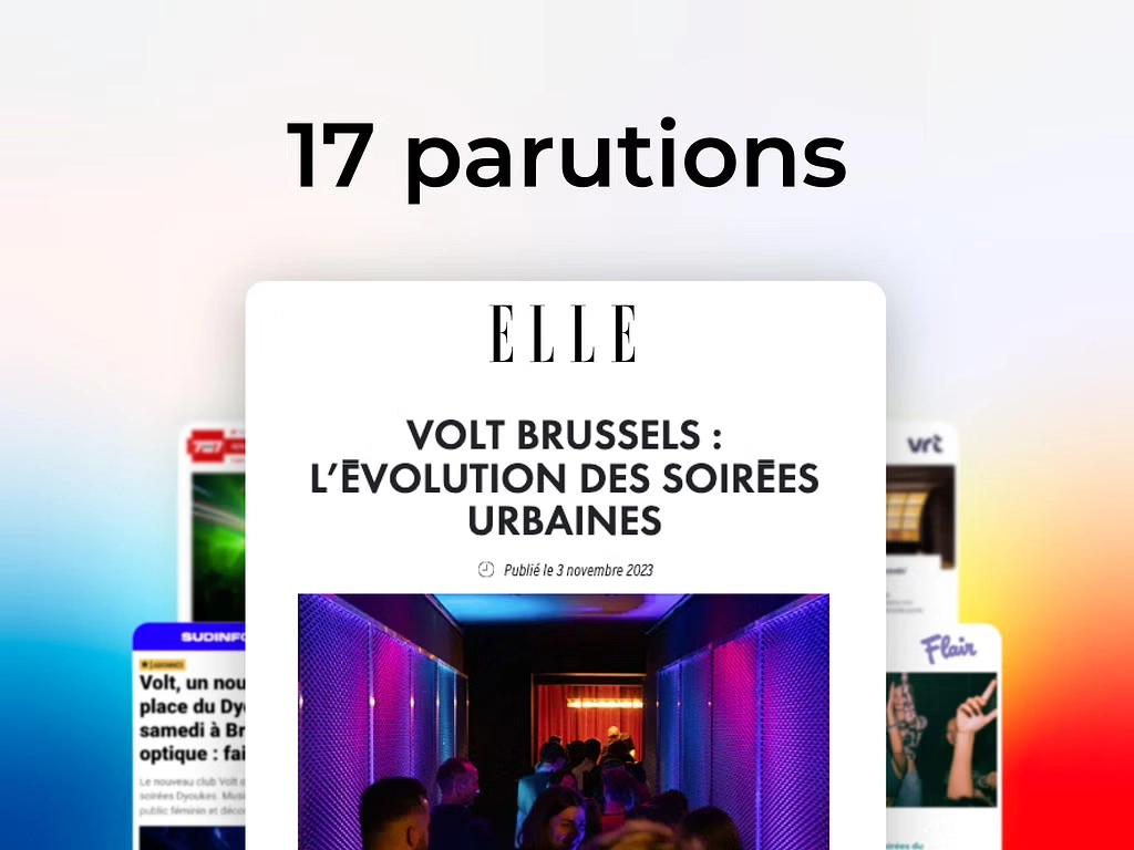 Le VOLT est le nouveau club incontournable de la nightlife bruxelloise. Avec son inauguration début novembre 2023 au coeur de la capitale dans l'établissement de l'ancien You, le club a su séduire la jeunesse bruxelloise. Son positionnement promet un nouveau genre de soirée en phase avec les besoins et les attentes des nouvelles générations : esthétisme du club, proposition musicale fine, scénographies audio-visuelles travaillées, etc. S'il y a un élément qui a fait la différence pour l'ouverture de ce nouveau club, c'est le renforcement de la sécurité, notamment pour les femmes, grâce à des agents formés et particulièrement attentifs. Un angle qui nous a valu un reportage de BX1, ainsi qu'un article de la VRT.
