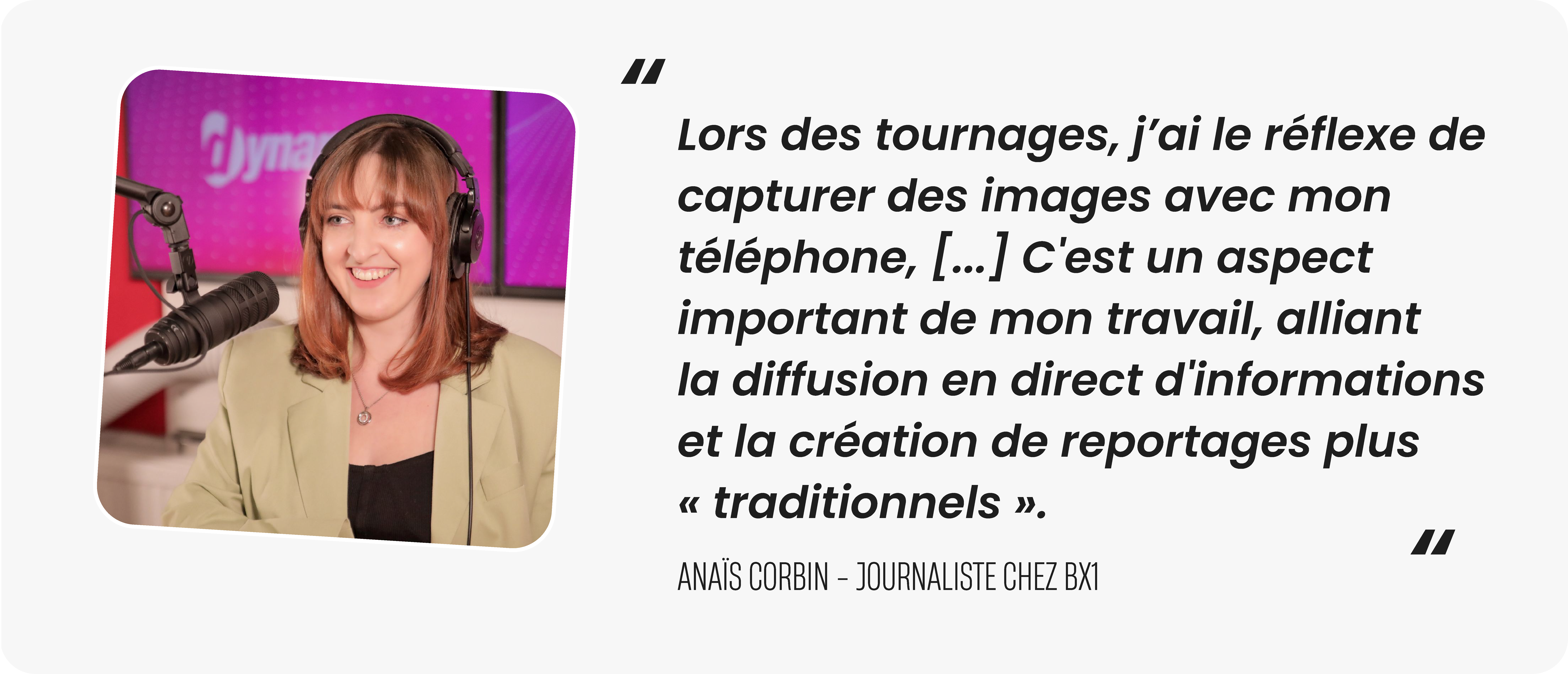 Pour notre deuxième épisode de “Dans la Rédac”, nous avons eu le plaisir d’accueillir Anaïs Corbin, journaliste chez BX1 ! Chaque jour, elle se consacre à la couverture de l’actualité locale bruxelloise pour la télévision et la radio. Sa particularité ? Son activité sur les réseaux sociaux, partageant avec passion les coulisses de ses reportages. Sans plus attendre, découvrez son quotidien et son engagement pour le journalisme local dans cette nouvelle édition de “Dans la Rédac”.