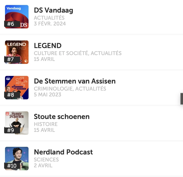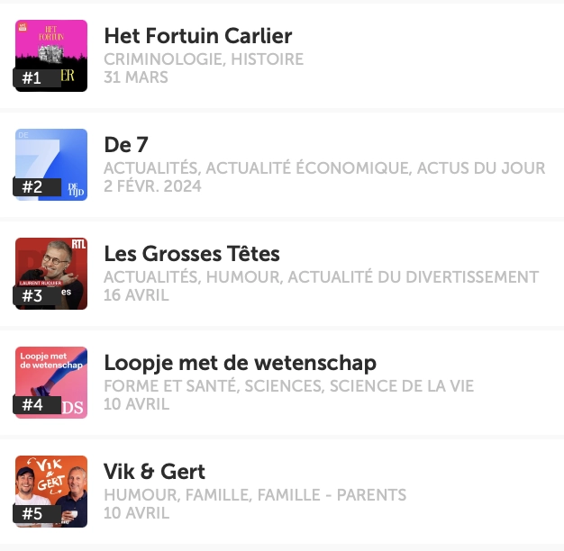 To dig deeper, we wanted to compare these figures with the most popular podcasts in Belgium.